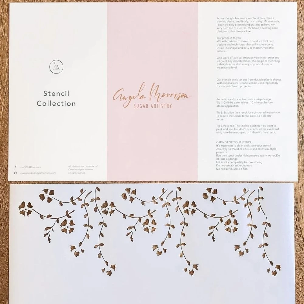 Add texture, layer colours, or add background patterns to your cake tiers with Angela Morrison’s stencil designs.
