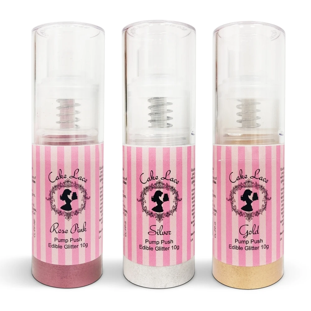 This kit contains all 3 of the Cake Lace Pump Push Dust colours: