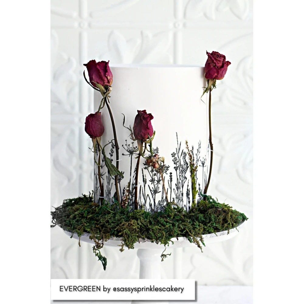 This Evergreen mesh stencil is perfect for adding beautiful floral designs to your cake tiers – ideal for spring and summer bakes, Easter themes, wedding cakes and so much more.