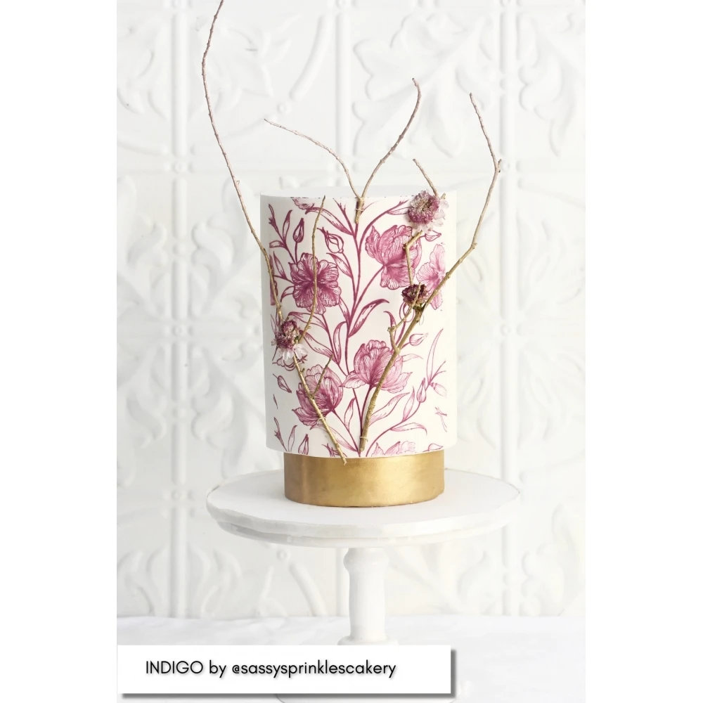This Indigo mesh stencil is perfect for adding beautiful floral designs to your cake tiers – ideal for spring and summer bakes, Easter themes, wedding cakes and so much more.