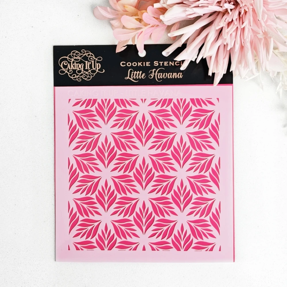 This Little Havana acrylic stencil is perfect for creating tropical goodies, summer bakes, or Hawaiian-themed treats.