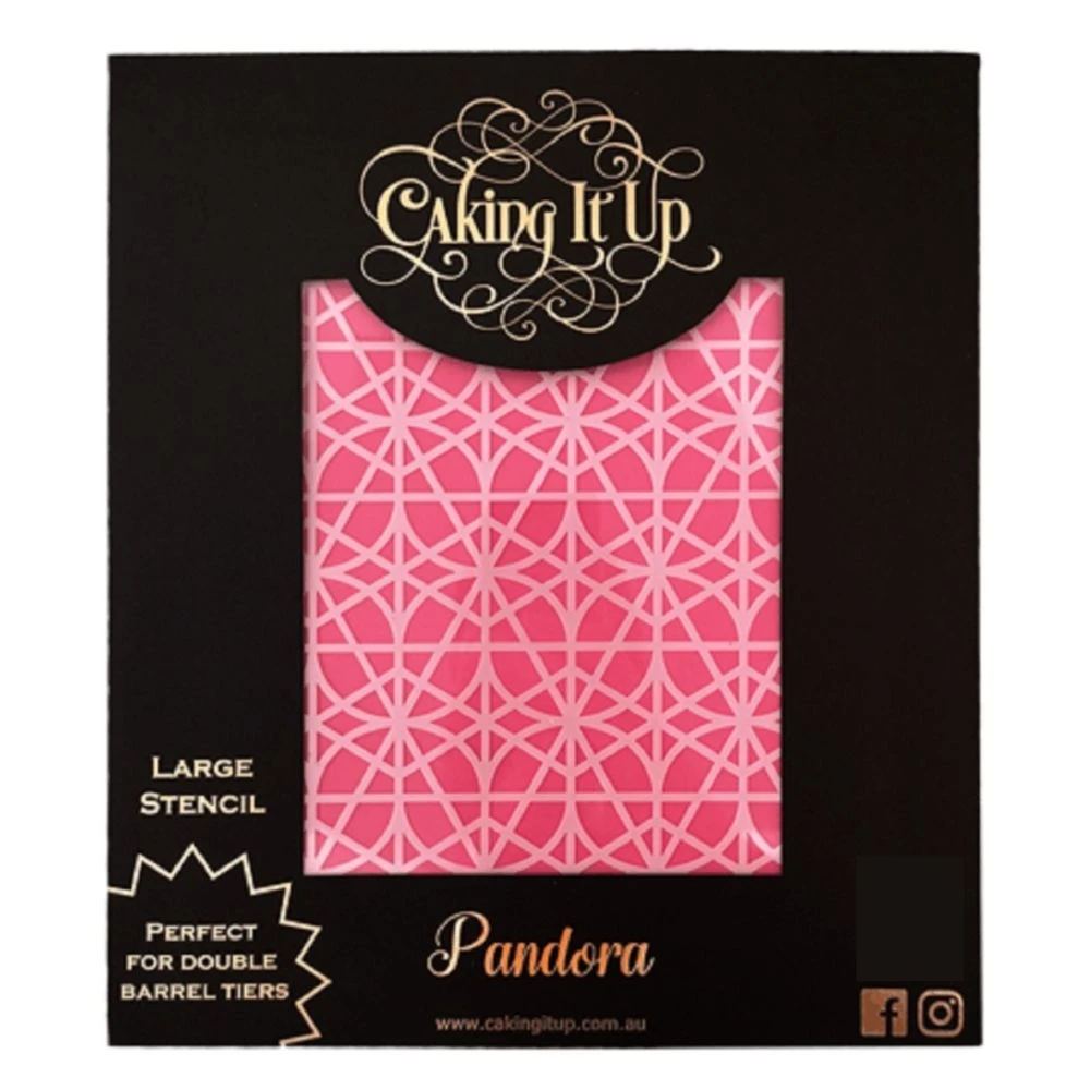 This Pandora stencil features an intricate interlaced panel design – perfect for adding texture and depth to your cakes.