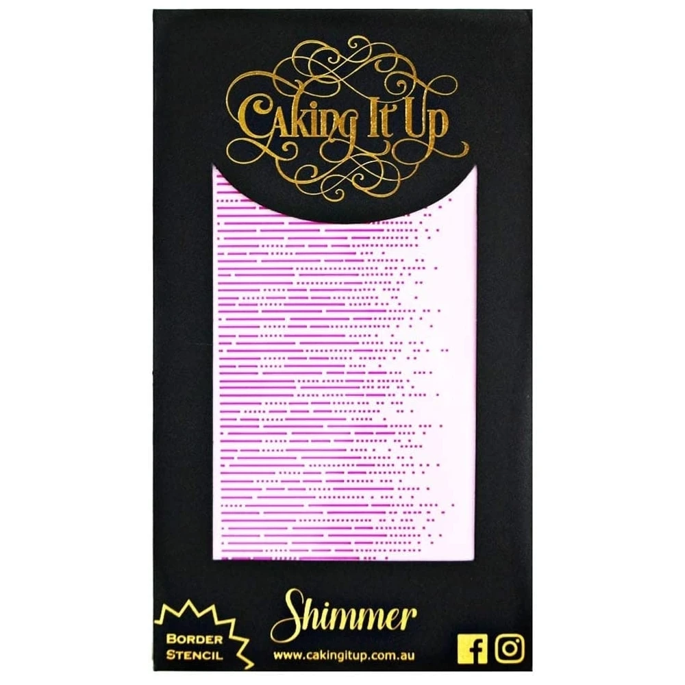 This shimmer border cake stencil creates a beautiful effect of falling rain, perfect for endless occasions and cake designs.