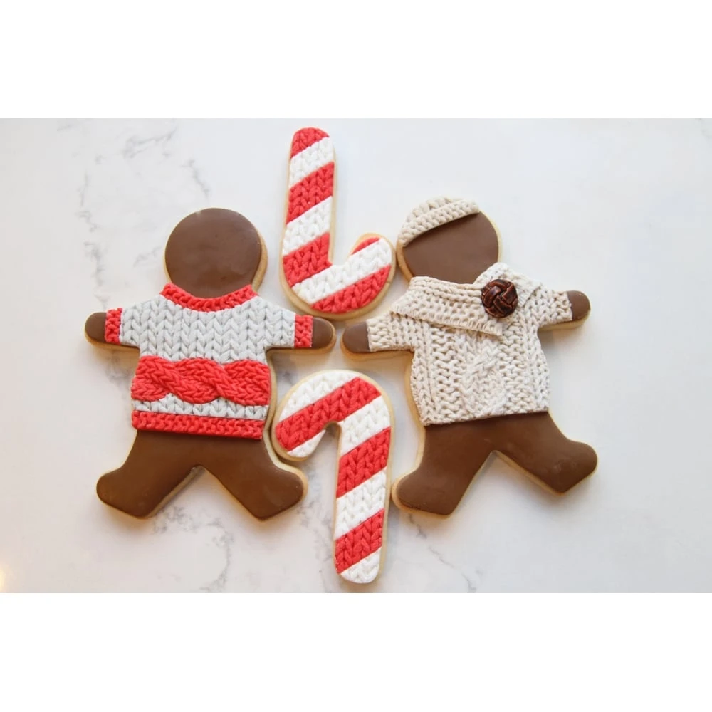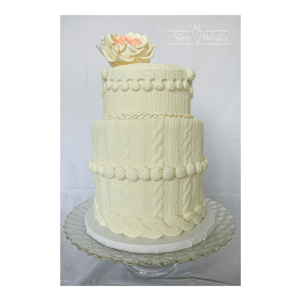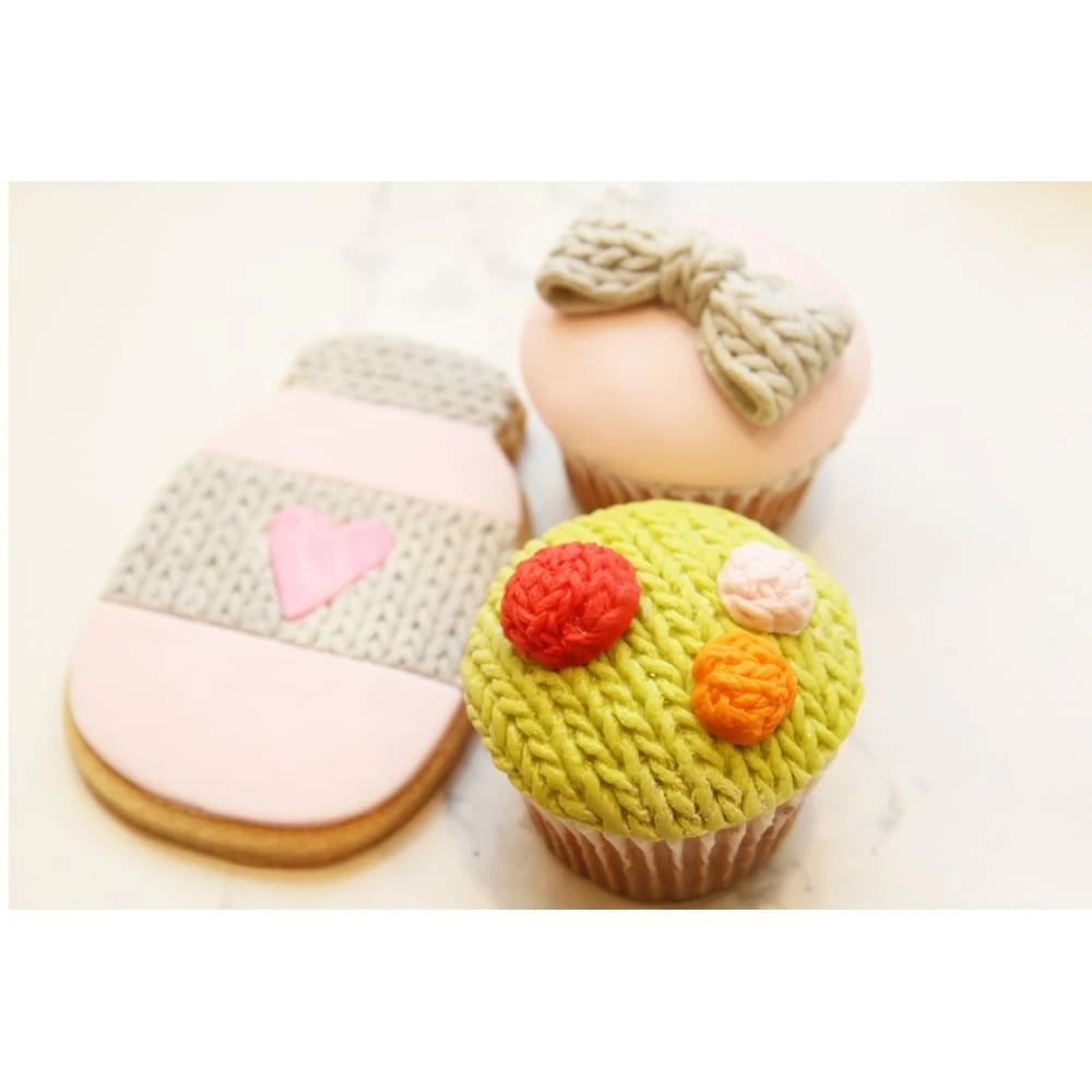 This Classic Knit Simpress lays the foundation for so many different textures and cakes. It can be used around cake tiers, or why not cut the panels out for cupcakes or use the textures on models or clothing for your cake toppers.