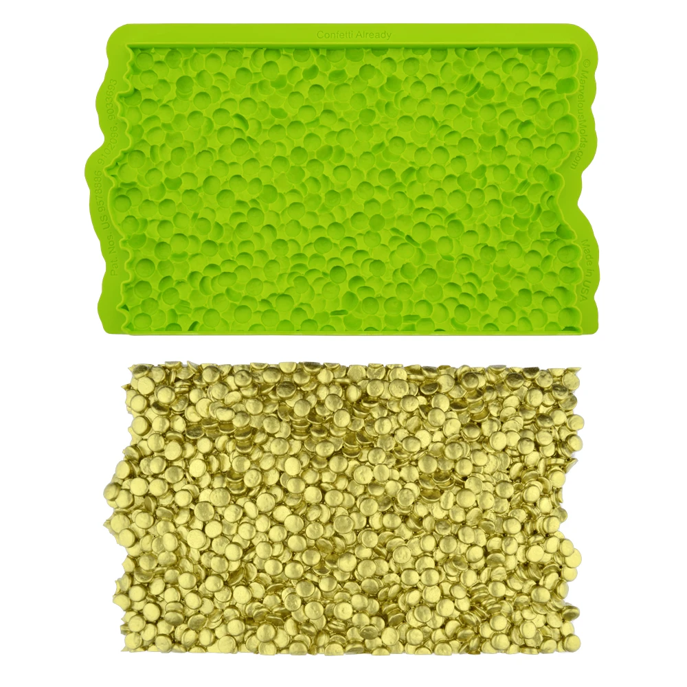 No longer will you have to painstakingly add confetti to your cakes. With the Confetti Already Simpress Mould by Marvelous Molds, you can add panels of gorgeous confetti in no time at all.