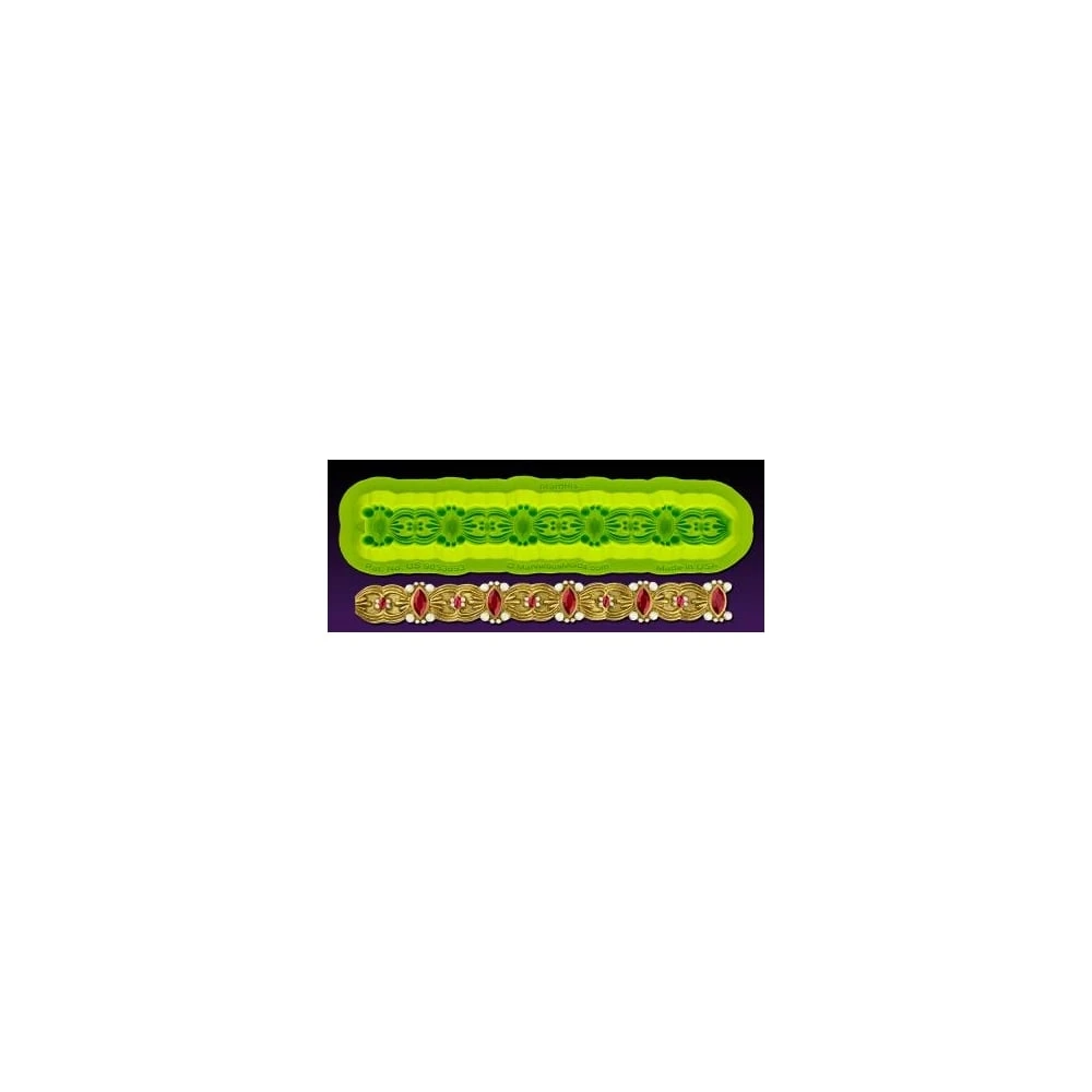 The mould is also so versatile it can be used to create sparkling edible jewellery, added as trim or a border to wedding cakes or even as a strap to a particularly elegant shoe cake.