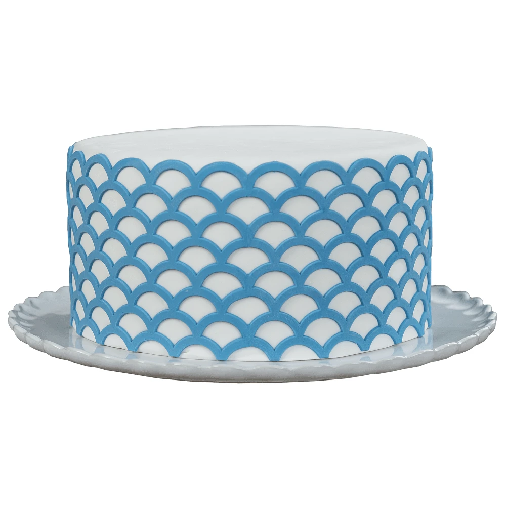 All border mould are 2xPi, which means that they will fit perfectly around an even cake (8”, 10”, 12”, etc) and will slot into each other without ever having to resort to cutting the pattern. This enables a uniform look without having to have a “back of a cake” look.
