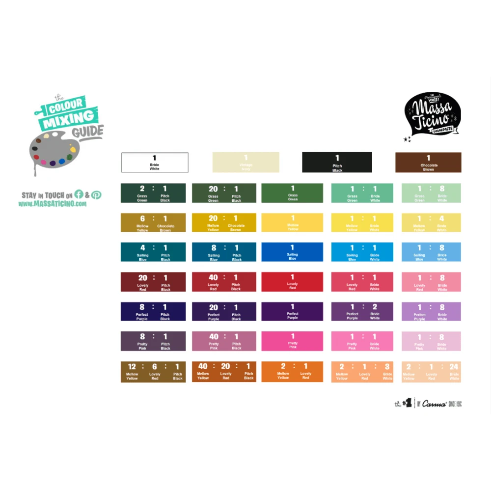 Massa Ticino Sugarpaste is a highly sought after sugarpaste with exceptional quality. It is a perfect choice for covering cakes due to it’s high elasticity, will not rip or crack whilst being used, and will smooth to a perfect finish with a crisp shell. This means no more ‘elephant skin’ appearances! Massa Ticino Sugarpaste comes in 8 distinct colours, but can be mixed with each other to make almost any colour imaginable! Please see the colour mixing guide in this product’s image gallery for more information on this.