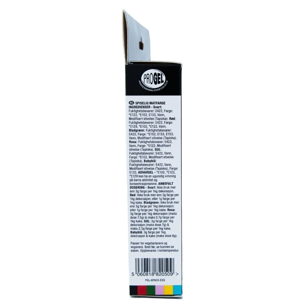 This essentials multipack ProGel kit includes 6 colours: black, red, leaf green, pink, yellow and baby blue – an absolute must-have for any cake whiz!