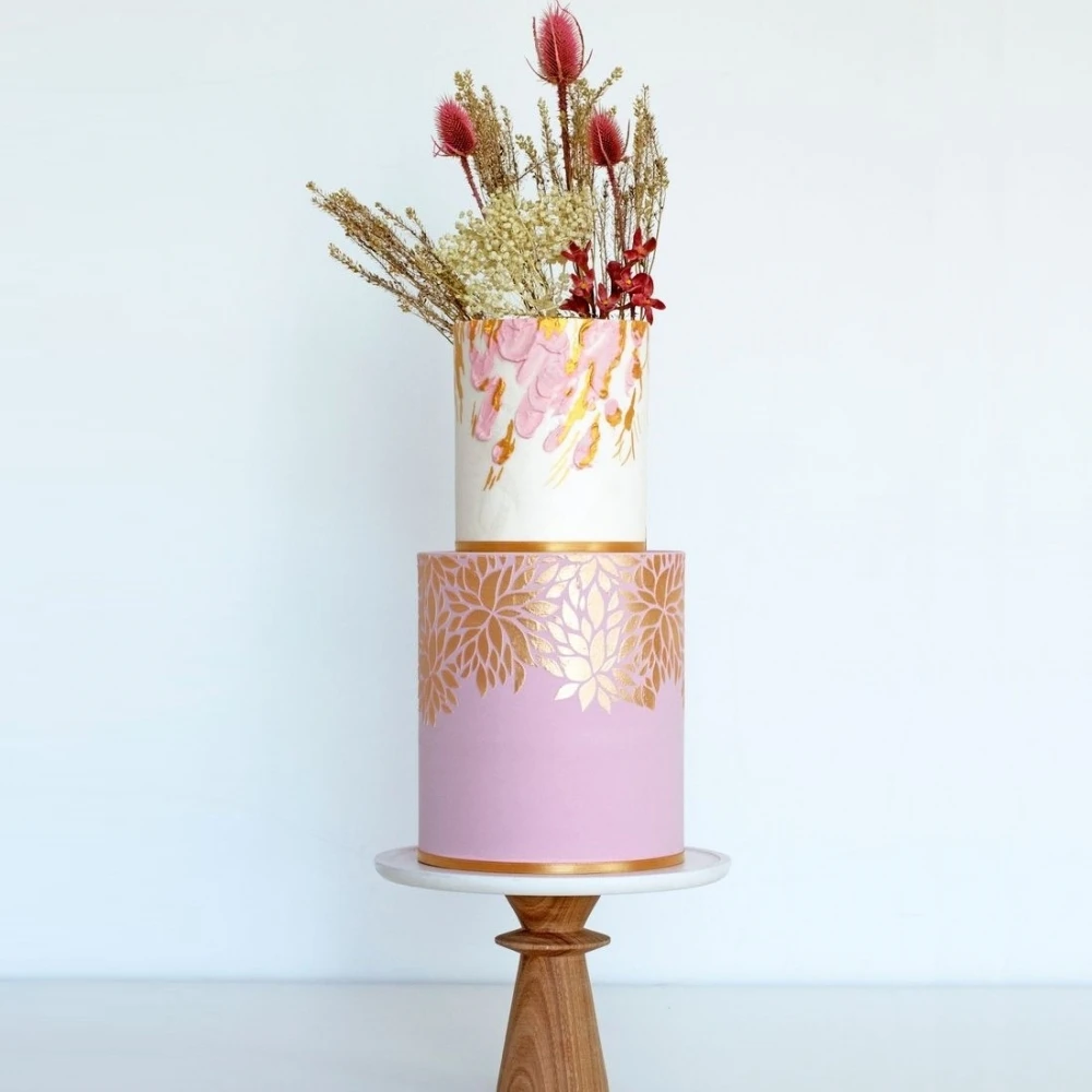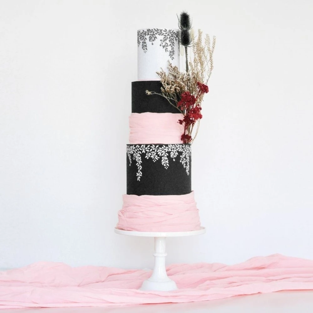 Produce beautifully elegant designs for your cake tiers with this stunning double-barrel cake stencil.