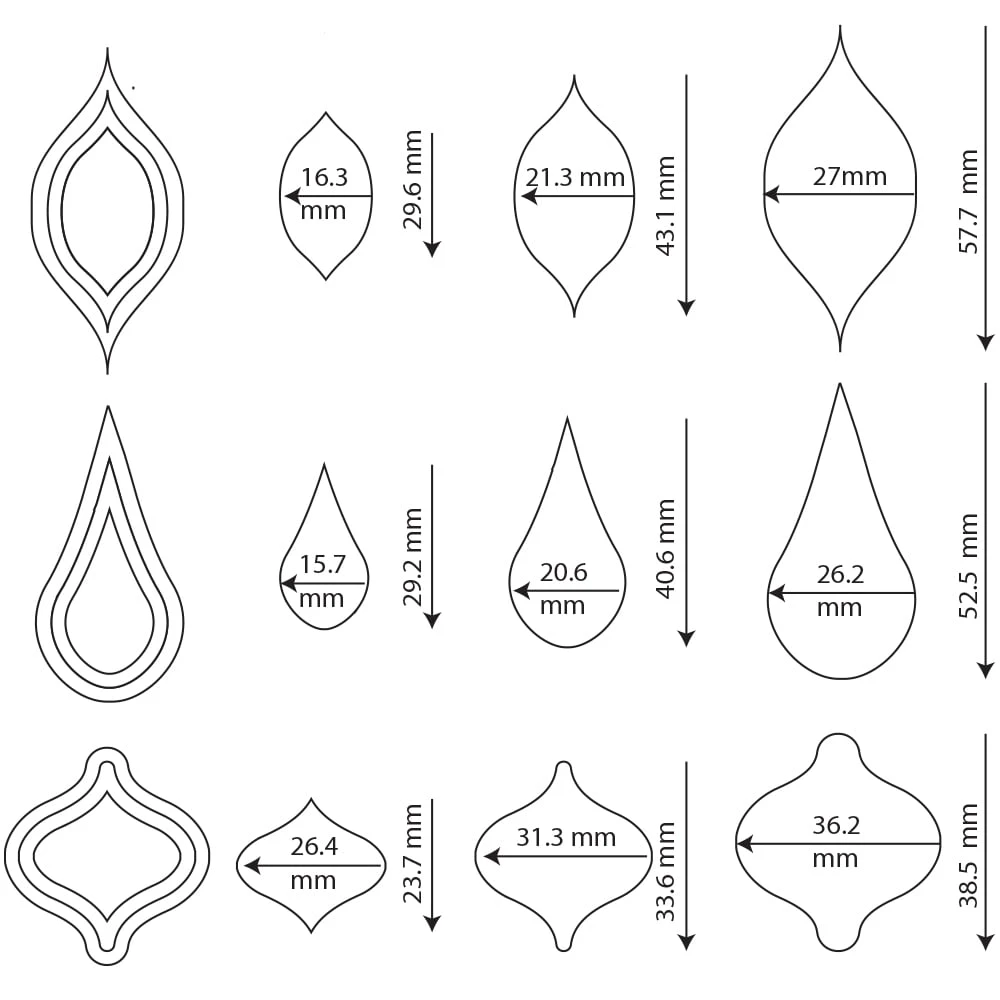 The Teardrop Cutters range from approximately 15mm to 36mm.