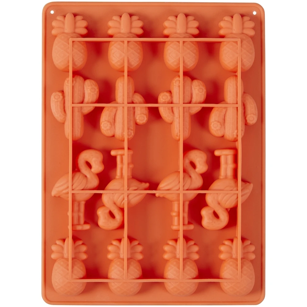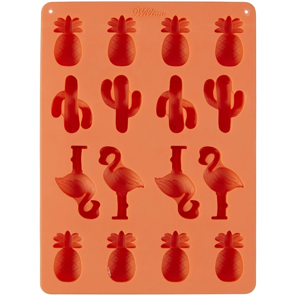 This Wilton Silicone Candy Mold is perfect for a tropical party! With this mold you can make pineapple, cactus and flamingo toppers of melted candy melts. The toppers will look great on tropical cakes, cupcakes and other treats.